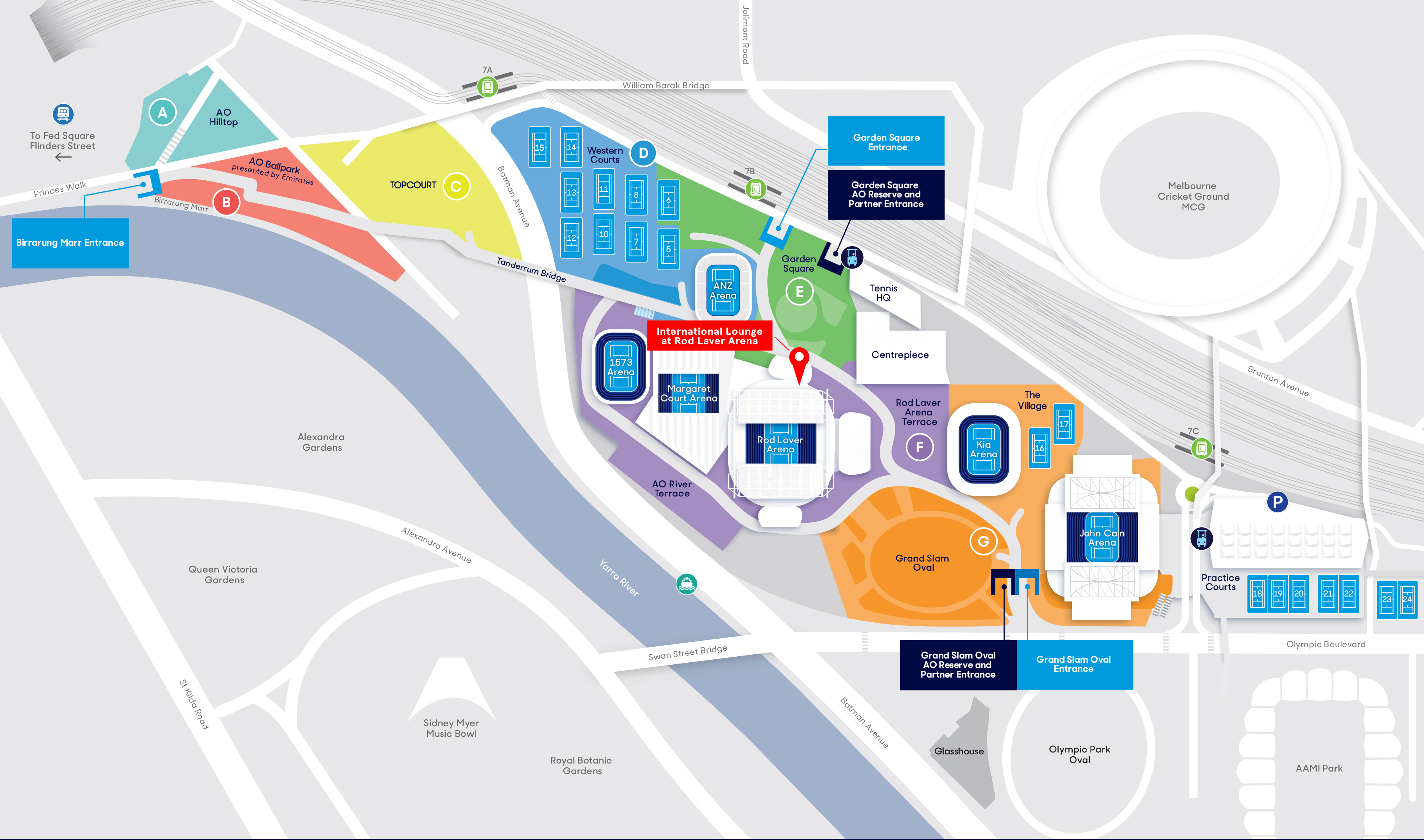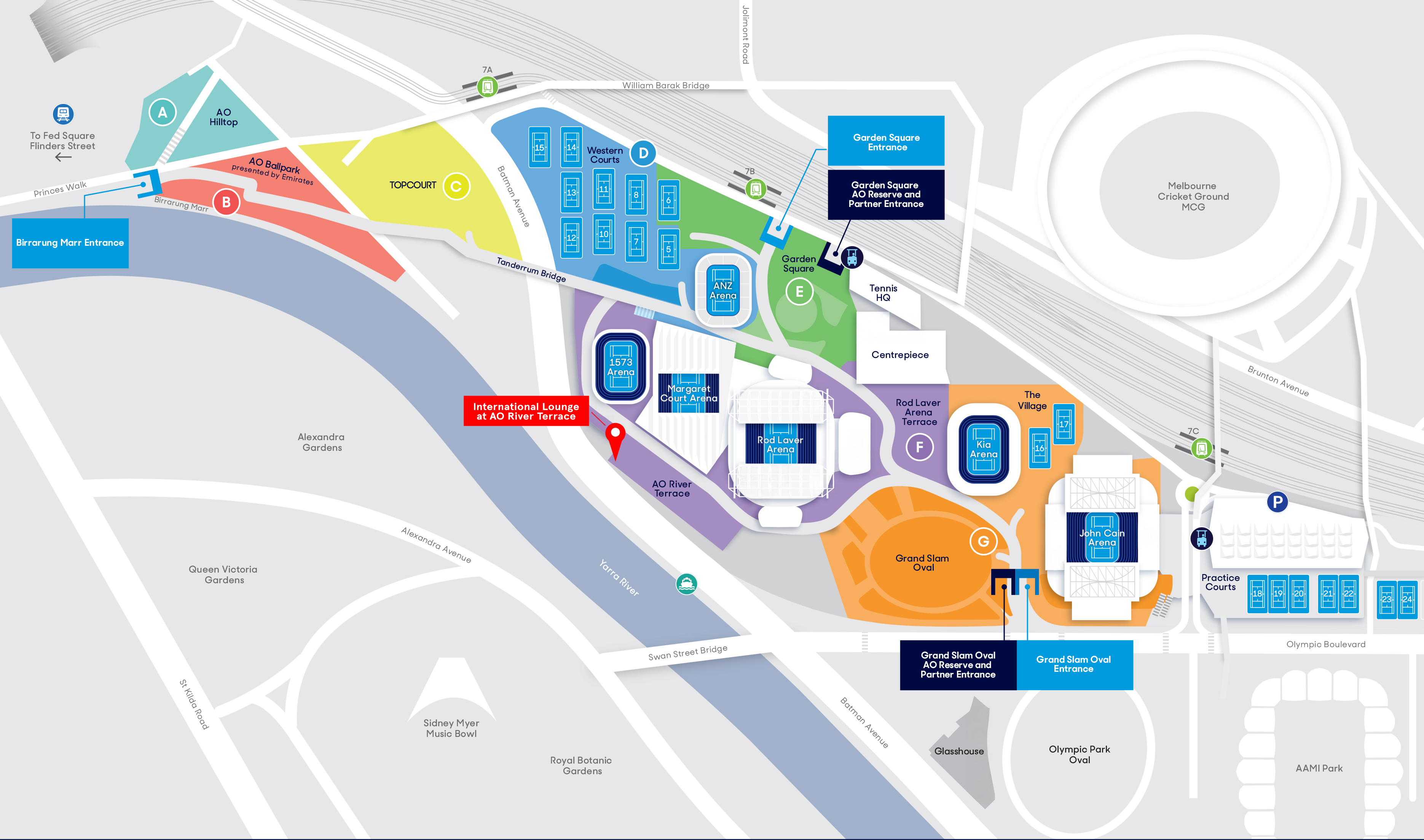 This premium venue features indoor and terrace seating with direct access to Rod Laver Arena. Guests enjoy all-day beer, wine, and sparkling wine, plus gourmet food stations and in-seat beverage service via QR code.